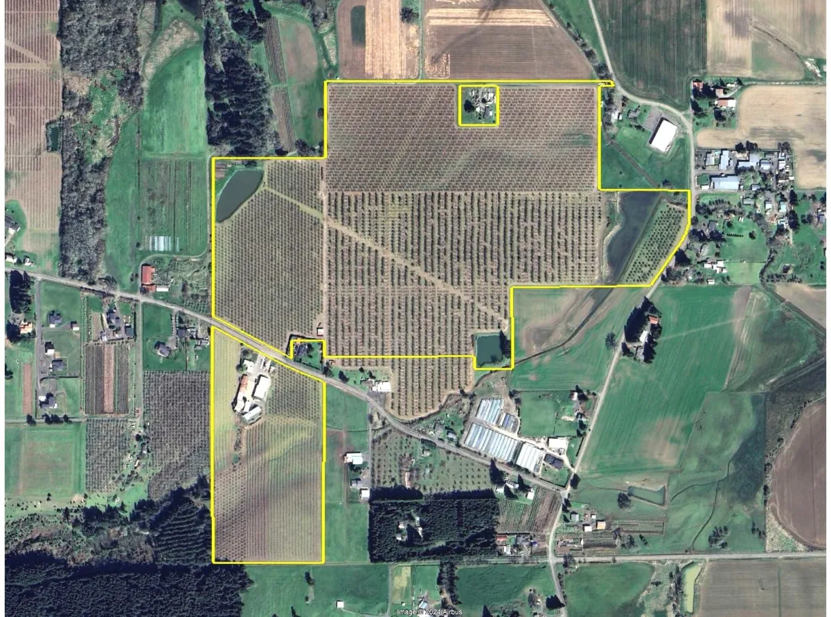 The Forest Grove orchard is a 118 acre parcel with 98 acres of Jefferson and McDonald hazelnuts of varying ages. Irrigation is provided via a ground water right for a high-volume well and above-ground reservoirs. The property offers a cleaning and drying facility that operate efficiently. A good farm yard, equipment storage, truck scales and other infrastructure is present. The property is further improved residential home and there is a separate building approval for an additional home. $2,490,000